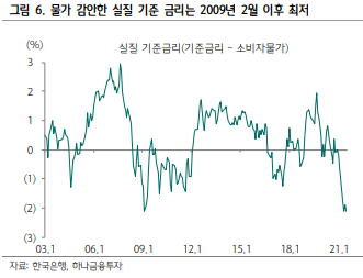 A. 결론적으로 25bp c인상했지만 금리 수준은 여전히 완화적이라 볼 수 있음. 현재 통화 금융상황은 경기, 물가 고려해서 판단하는데 이 역시 여전히 완화적. 구체적으로 수치 말하자면 완화적이냐 아니냐 판단의 척도는 실질 금리 수준이 어느 정도인지. (기준금리) 25bp인상했지만 실질금리는 여전히 큰 폭의 마이너스 나타내고 있음. 당연히 지금의 기준 금리는 한은이 판단하는 중립 금리보다도 여전히 낮은 수준