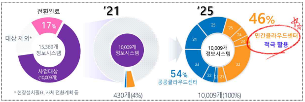 올해부터 5년 동안 행정기관과 공공기관이 운영 중인 모든 정보시스템(10,009개)을 클라우드로 전면 전환·통합