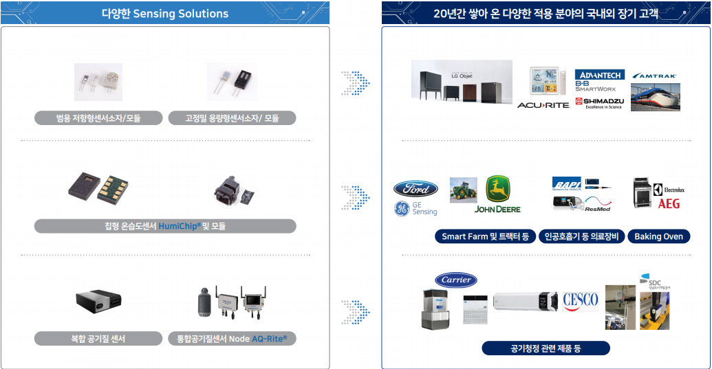 - 20년 이상 센서의 소재와 소자 기술 그리고 이를 교정 및 양산 할 수 있는 기반 기술을 보유 하고 있는 국내 유일의 환경 센서 전문 업체